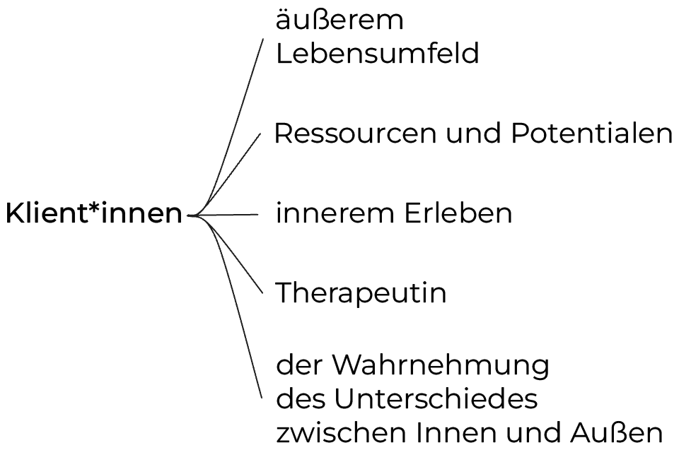 Dabei ist der Kontakt zwischen Therapeutin und Klient*in die Basis der gemeinsamen Arbeit.